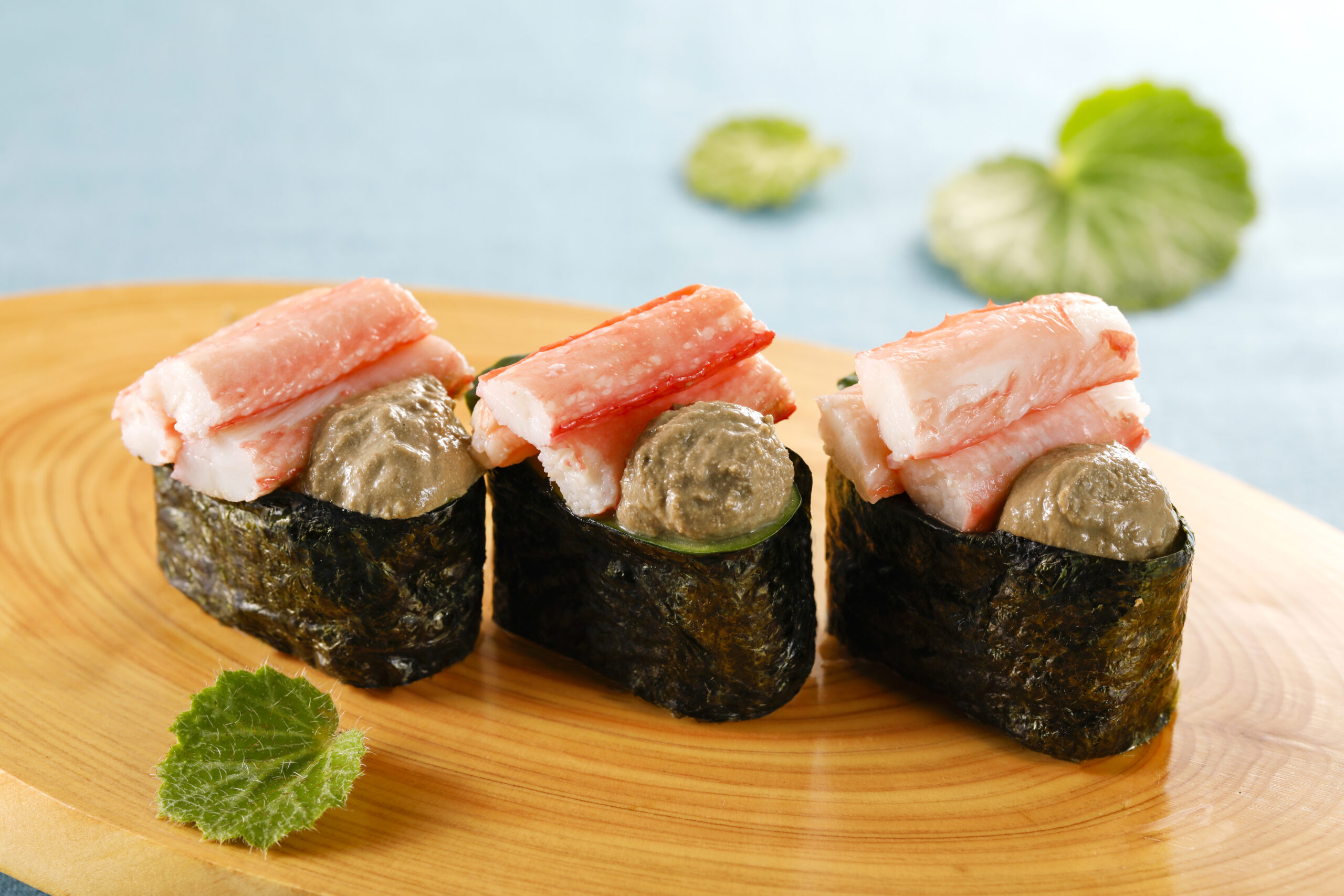 海苔で包んだご飯に、海の恵みをたっぷり詰め込んだ軍艦巻きスタイルの一品です。